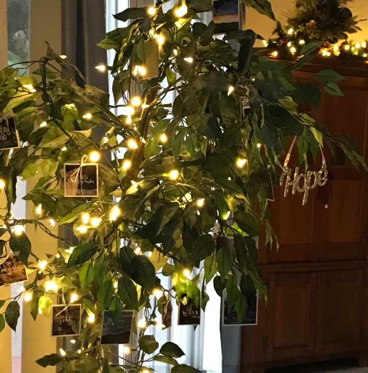 While reorganizing the gift wrap bin to go back into our garage storage space the other day, I noticed our neglected “hope” tree and was tempted to pack it all up, unused ornaments and all, to “hope” for a more focused season next year . . . but I didn’t.
