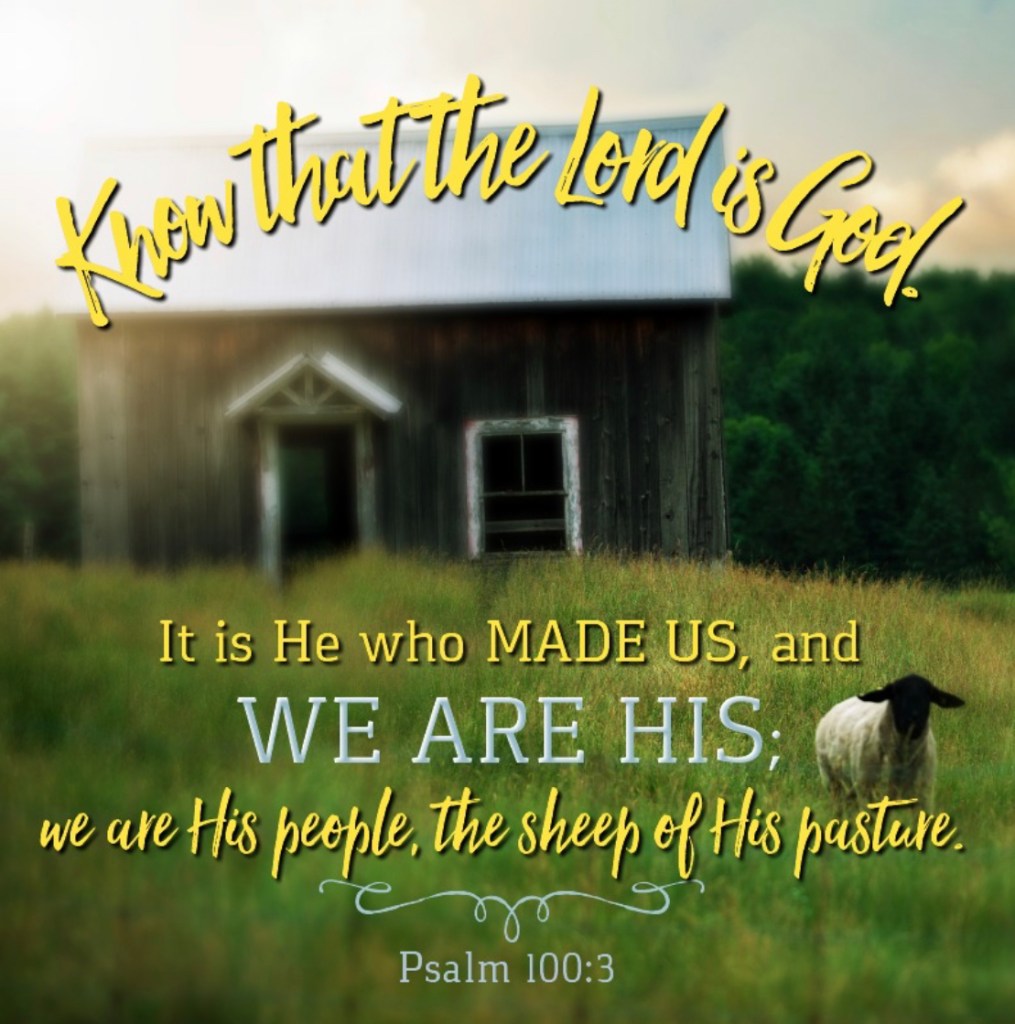 “Make a joyful noise to the LORD, all the earth! Serve the LORD with gladness. Come into His presence with singing! Know that the LORD Himself is GOD! It is He who has made us, and we are His. We are His people, the sheep of His pasture.” Psalm 100:1-3