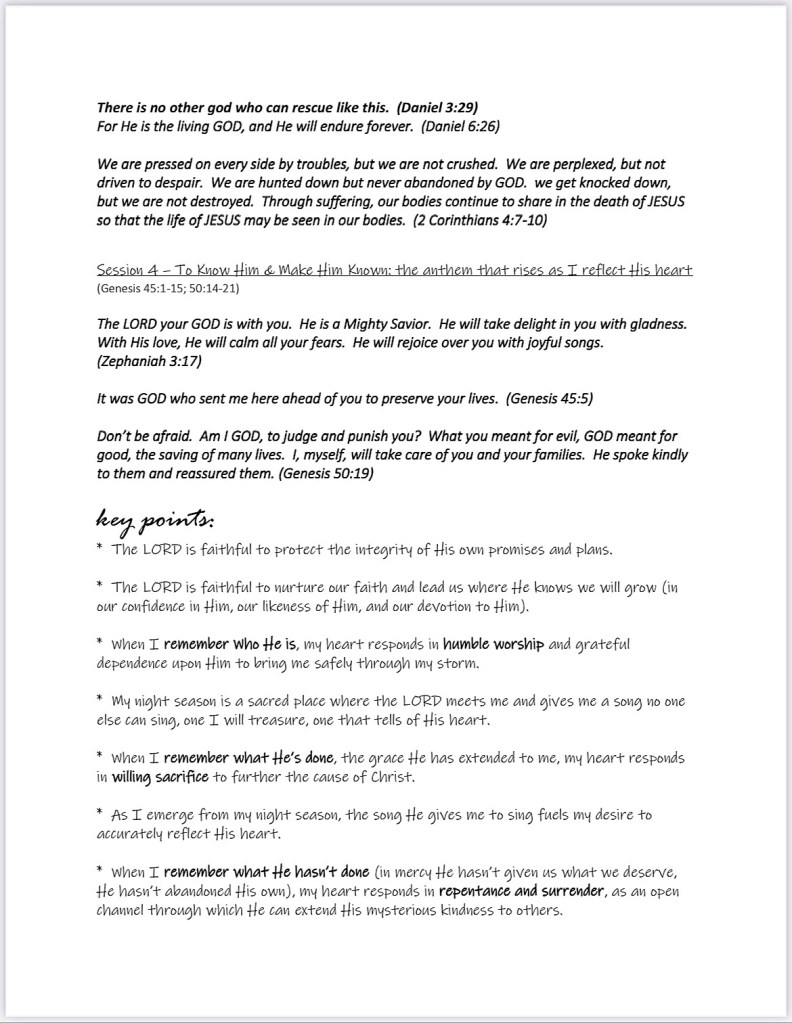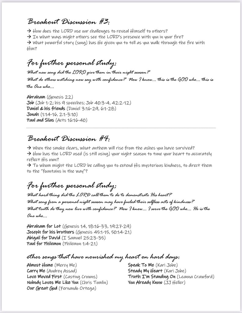 In case it is helpful to follow along, also included below, please find an outline from the weekend, with Scripture passages from each session, as well as a copy of the handout listing breakout discussion prompts and passages for further personal study.
