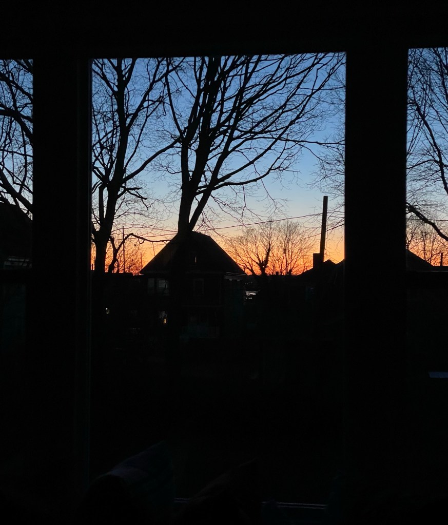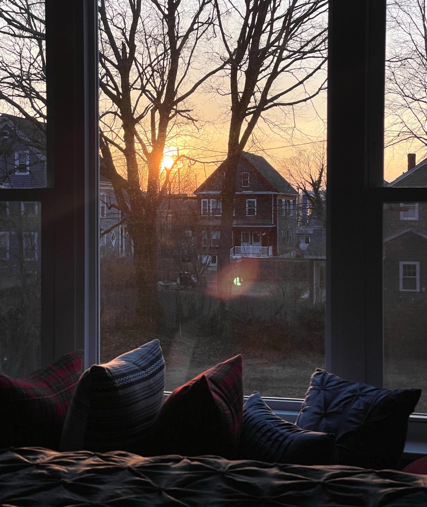 I am thankful for a big, beautiful window in our bedroom, through which I can watch the changing colors and angles of light in the sky, from sunrise to sunset and everywhere in between.